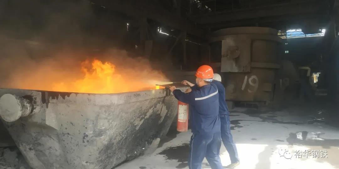 5月18日,裕華煉鋼廠根據公司夏季五防實施方案要求,并結合現場實際,與煤防站聯合進行了消防應急演練。