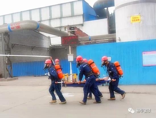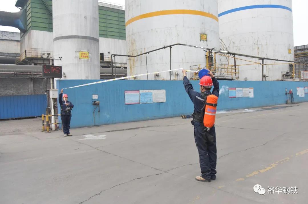 公司總經理劉文波,安全總監崔建本,總經理助理張彥斌,生產部部長肖磊,安全處處長靳張君、副處長牛亮,動力廠廠長張建平等領導參加了這次演練活動。安全處處長靳張君擔任演練負責人、副處長牛亮任總指揮、主區煤氣防護站站長郭朋飛擔任現場指揮。