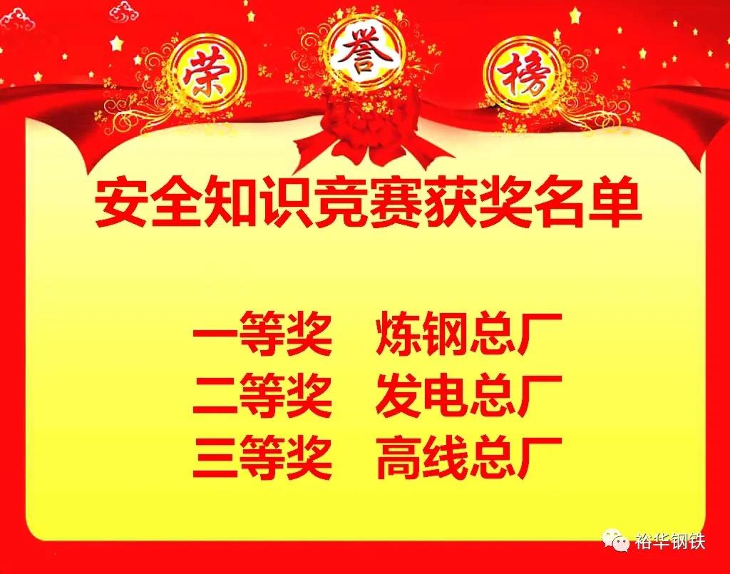 為全面貫徹國家安全生產方針,落實安全生產責任制,結合安全生產工作實際,扎實做好安全生產各項工作。提高廣大員工的安全防患意識,扎實推進2020年“安全生產月”活動深入開展,不斷加深對安全知識的了解,增強將理論知識應用于實際的能力。全面突出“消除事故隱患,筑牢安全防線”的安全月活動主題。6月26日下午,裕華鋼鐵“2020年度安全知識競賽”及“安全在我身邊”征文獲獎者頒獎儀式。