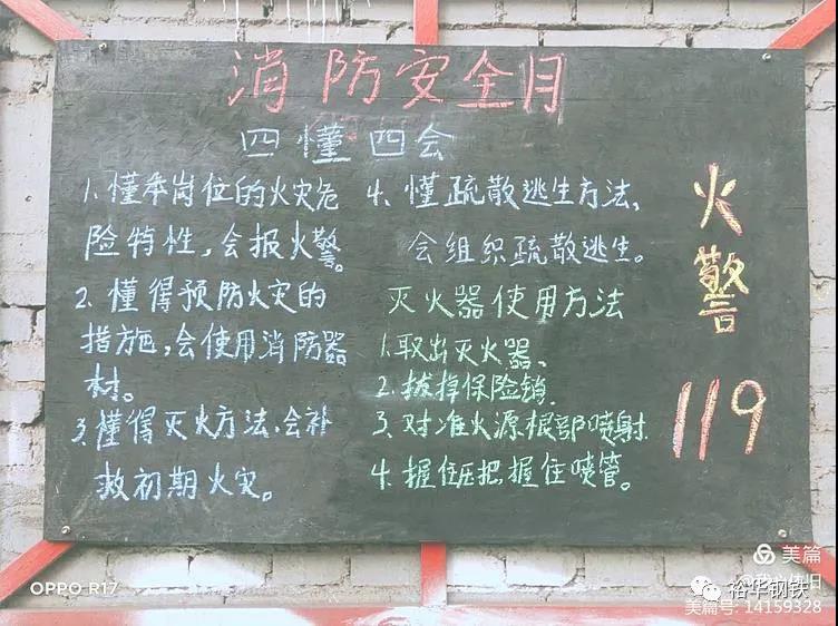 廠區(qū)現(xiàn)場(chǎng)利用條幅進(jìn)行宣傳,并時(shí)刻關(guān)注消防、生命至上,煉鐵東區(qū)全體職工堅(jiān)決打好安全消防月攻堅(jiān)戰(zhàn)。